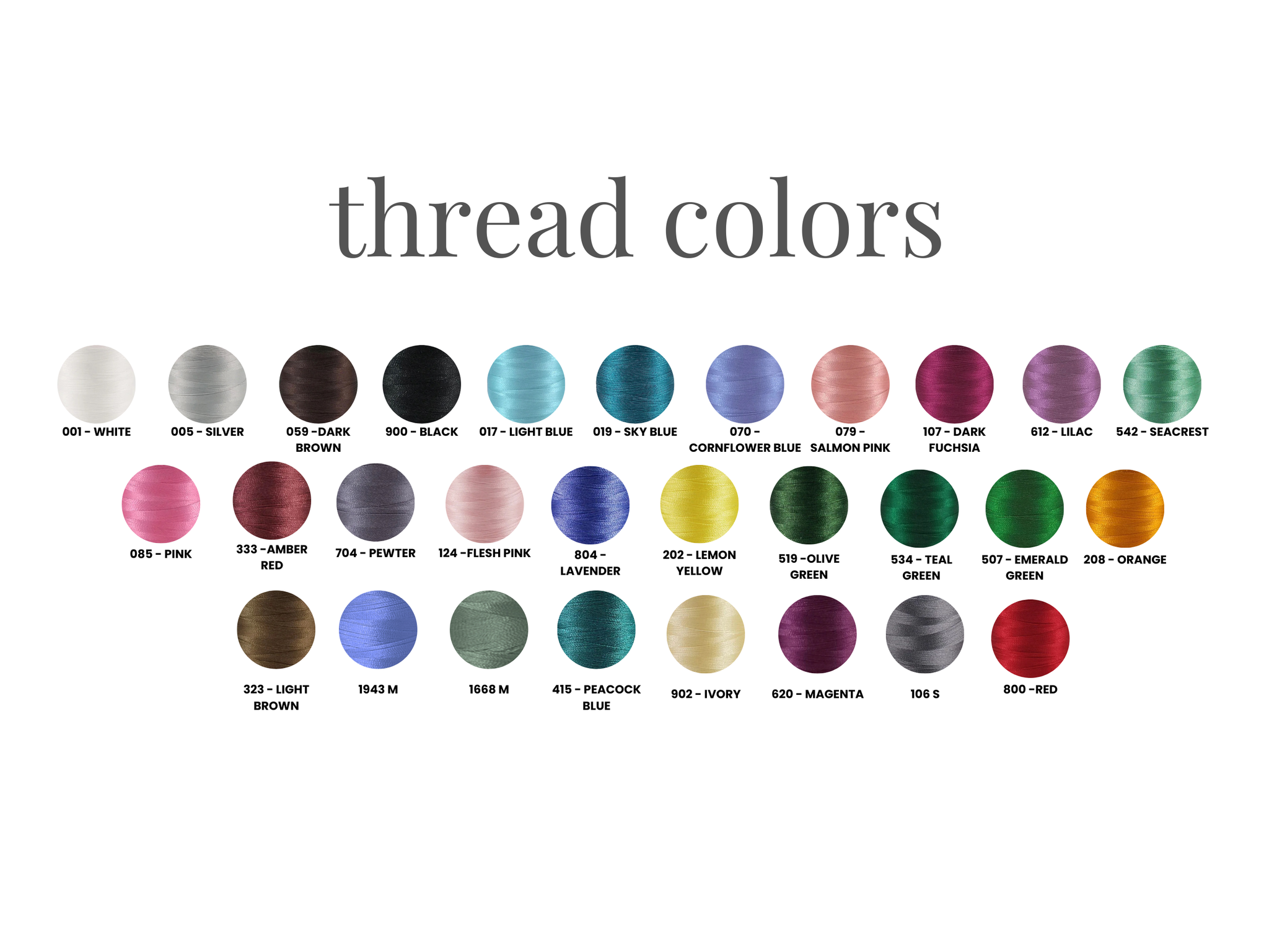 **You can also choose another color shirt and two threads. Please use the color charts and leave a note at checkout**
